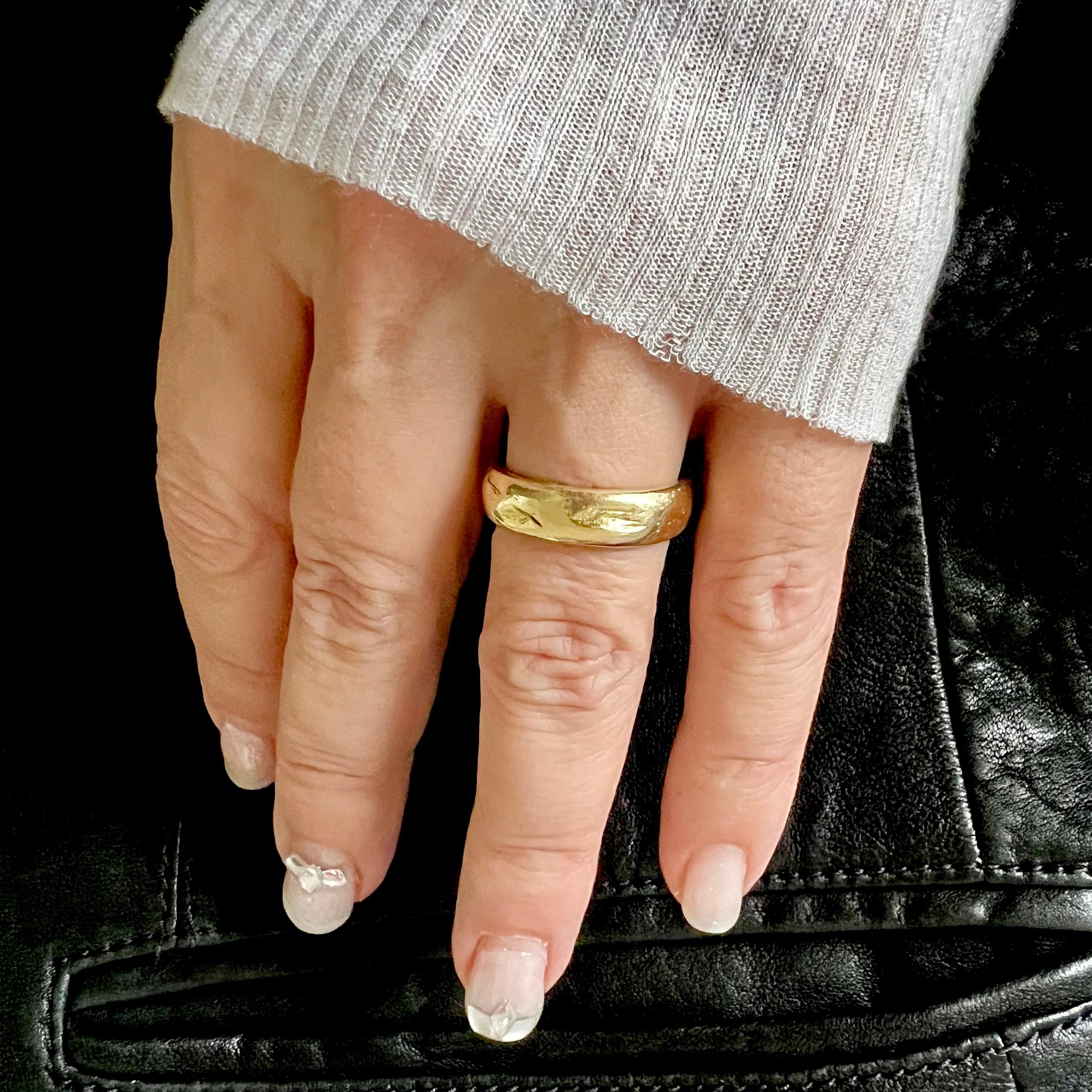 With its weathered, worn-in appearance and domed profile, this Karen Karch signature weighty band was created to look even better over time. Wear it as a wedding band or as a fashionable stacking ring on any finger.