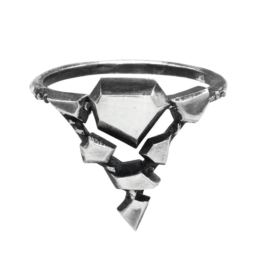 Landslide features a flowing arrangement of angular metal stones that elegantly drape the finger. This piece is designed to stack seamlessly with your preferred rings from our collection.