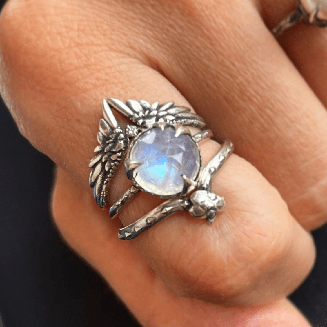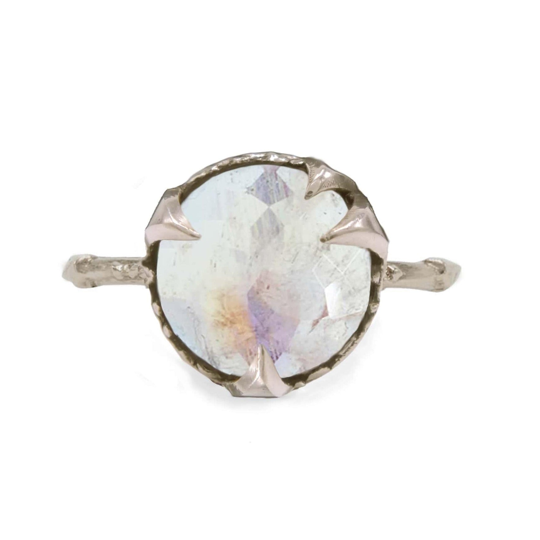 Our supernatural signature setting embraces nature’s mystical forces and elevates the beauty of the gemstone it holds. The center stone is complemented by a delicate, chiseled band.